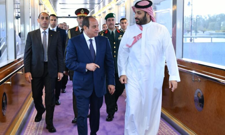 وصرح السفير محمد الشناوى، المتحدث الرسمي باسم رئاسة الجمهورية، انه كان في استقبال الرئيس لدي وصوله إلى مطار الملك عبد العزيز الدولي بمدينة جدة أخوه صاحب السمو الملكي الأمير محمد بن سلمان، ولي عهد المملكة رئيس مجلس الوزراء، إلى جانب السفير إيهاب أبو سريع، سفير مصر لدى الرياض، حيث تم عقد جلسة مباحثات بين السيد الرئيس وصاحب السمو الملكي الأمير محمد بن سلمان بمشاركة وفدي البلدين، أكد خلالها السيد الرئيس دعم مصر التام للمملكة في مواجهة التحديات الإقليمية الراهنة، وعلى أن أمن المملكة هو جزء لا يتجزأ من أمن مصر وعلى أن الأمن القومي لدول الخليج العربي يُعد امتدادًا للأمن القومي المصري، مشيدًا سيادته بحكمة القيادة السعودية لخادم الحرمين الشريفين وصاحب السمو الملكي ولي العهد، ومؤكدًا مساندة مصر لما تتخذه المملكة من إجراءات لحماية أمنها واستقرارها ومصالح شعبها الشقيق. كما شدد السيد الرئيس على استعداد مصر لتقديم كافة أشكال الدعم للحفاظ على أمن واستقرار المنطقة، مستعرضاً الجهود المصرية الرامية إلى وقف التصعيد، بما في ذلك الرسائل الواضحة التي نقلتها مصر إلى الجانب الإيراني بضرورة وقف الاعتداءات فورًا والعودة إلى المسار التفاوضي حفاظًا على استقرار وسيادة الدول ومقدرات شعوبها وفقًا للقانون الدولي وميثاق الأمم المتحدة.
