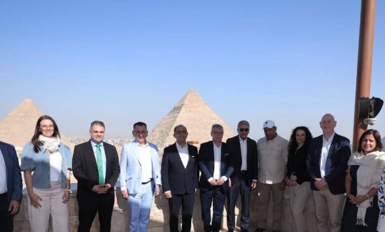 التقى، السيد شريف فتحي وزير السياحة والآثار، مع السيد Albin Loidl رئيس اتحاد شركات السياحة الألمانية (DRV)، والسيد Volker Adms مسئول السياسات العامة والمقاصد السياحية بالاتحاد، ووفد يضم عشرة من الرؤساء التنفيذيين لأهم كبار منظمي الرحلات بالسوق الألماني من بينهم Bentour Reisen و Sancarbarlaz Tours و Erlebe Reisen! و nüma و Biblische Reisen و Ferien Touristik Coral Travel و Der Tour، وذلك بمنطقة أهرامات الجيزة، وبحضور الدكتور أحمد يوسف الرئيس التنفيذي للهيئة المصرية للتنشيط السياحي، والأستاذ أشرف محيي الدين مدير عام آثار الجيزة.